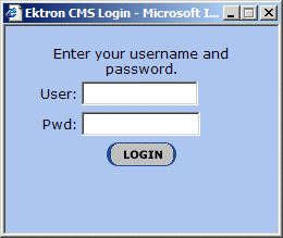 For more information about logging in, see Logging Into an Ektron CMS400.NET Web Site.