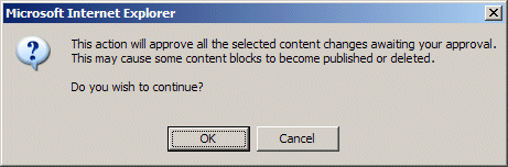 - The approved content blocks are either submitted to the next publisher, published immediately to the Web site, or deleted, depending on the approval chain set for each content block.