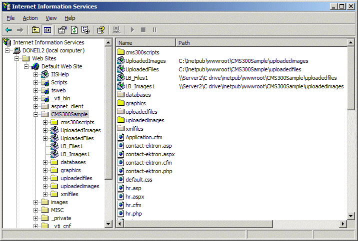 A load balance path is called LB_Images1. Ektron CMS400.NET talks to IIS and resolves the path for the virtual directory LB_Images1, which happens to be \\{Computer1}\C:\InetPub\wwwroot\400Sample\UploadedImages.
